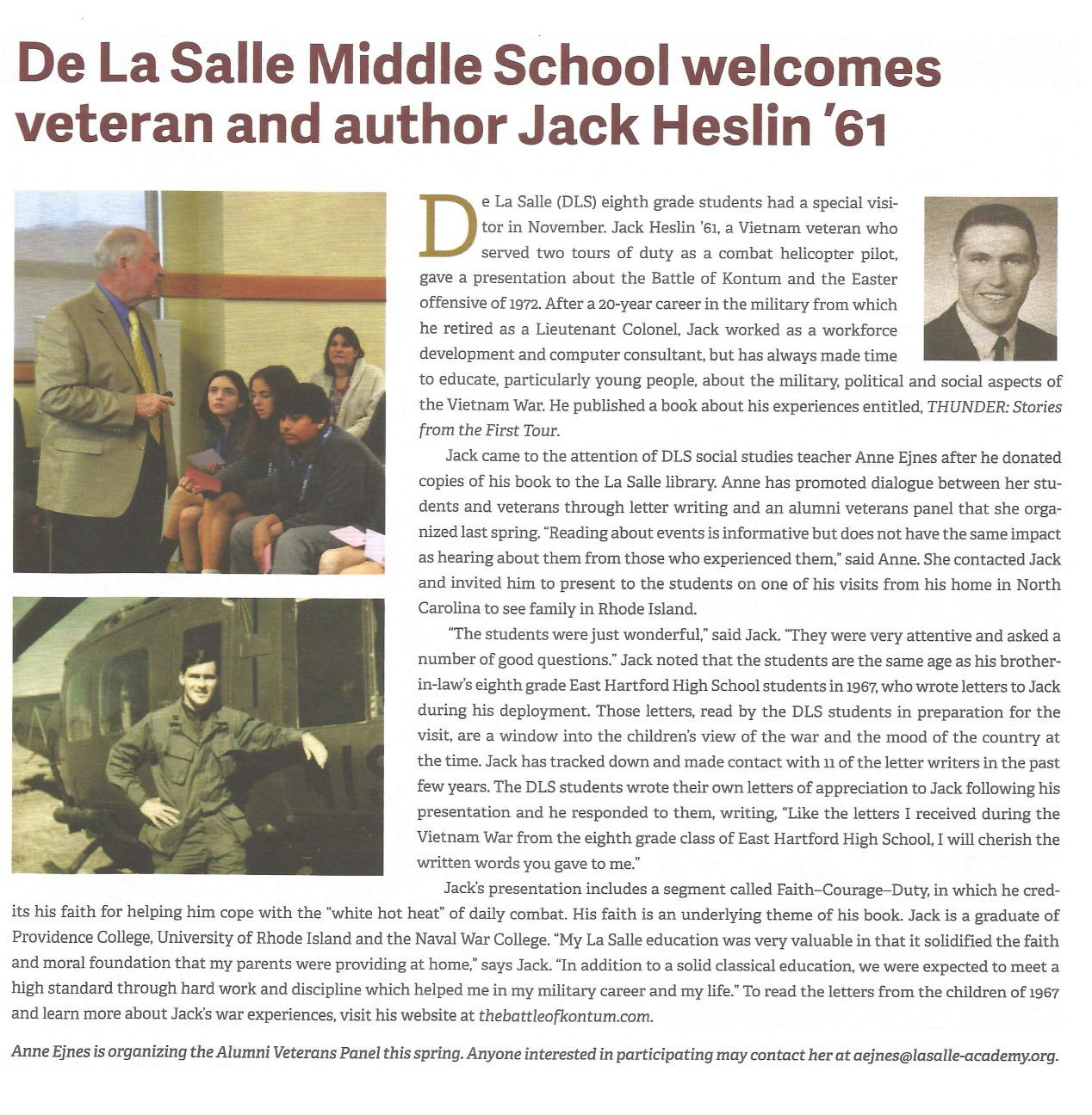 DE LA SALLE ACADEMY ALUMNI NEWSLETTER ARTICLE