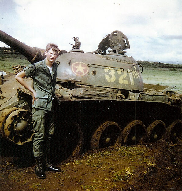 Gary Overby with a NVA T-54 that had been knocked out during the offensivePhotograph courtesy of Gary Overby