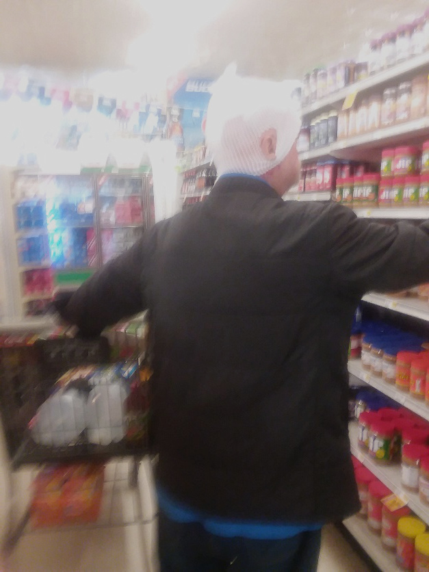 Because of Rick’s transportation problems I started grocery shopping for him about once a week. I printed up copies of shopping lists of those items he typically needed and provided space for him to write-in other items not printed on the list. I put a picture of Rick below filling out one of the shopping lists.