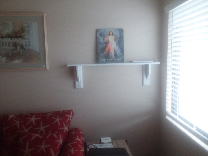 Among the items we put, early on, in the condo was a picture of the “Devine Mercy” which we had purchased from the gift shop at our church Our Lady Star of the Sea in North Myrtle Beach. Jean found the picture and we had it Blessed by Fr. Andy at the church before we brought it in to the condo. I put a picture of the Divine Mercy in the condo below.