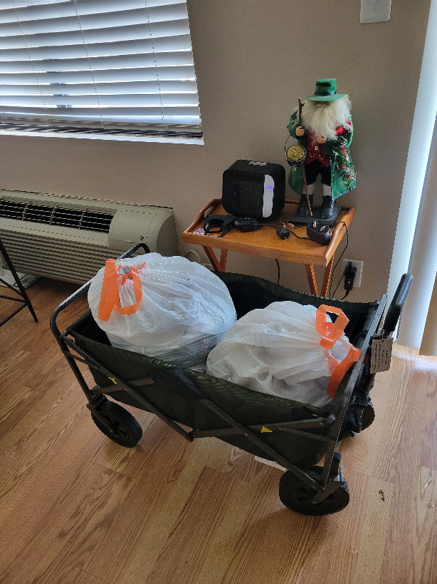 I brought in a small wagon to help Rick get his laundry down the hall. That helped him a lot. I put a picture below of the wagon.
