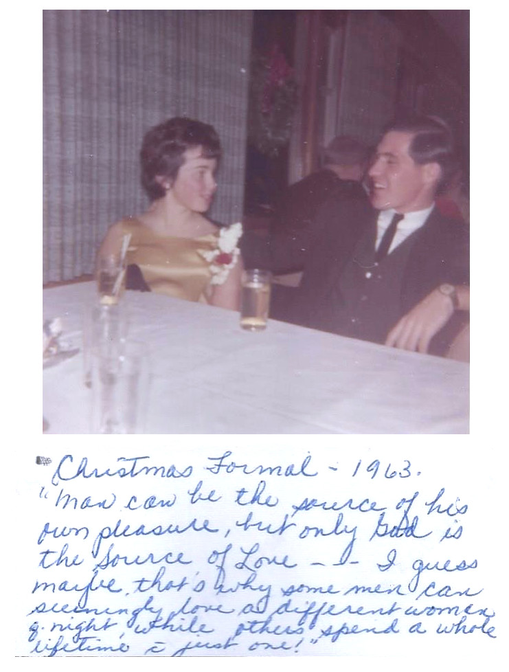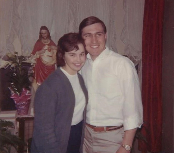 One of Jean's classmates came running up the stairs to tell Jean that it was not Joe but rather it was Jack. Jean about panicked thinking I would be there when Joe showed up. She came running down the stairs with rollers still in her hair and the house mother yelling at her that "Ms. Savoie, you can't come down here looking like that!" She greeted me in the parlor and explained the situation and said she would get rid of Joe when he showed up and then come back to talk to me. In a little while she came back into the parlor and I handed her the three red roses. I said I knew she was committed that night but I just wanted her to have the roses. I said the three roses had meaning. One represented her, one represented me, and one represented God who would be part of our relationship from the beginning. She was touched. I then left.