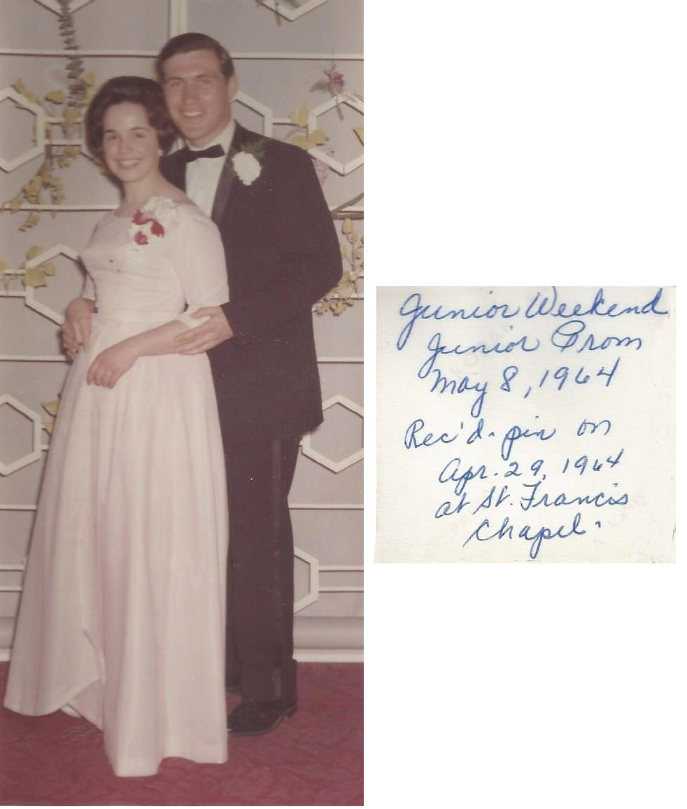 It was while kneeling there at that Chapel that we shared some of the most significant things we wanted to say to each other. It was there that I gave Jean my college pin. It was there that I asked Jean to marry me, and it was there that I gave Jean her diamond ring. The Chapel was most often open so we would go there even if it was late in the evening. Throughout our courtship our growing Faith was at the core of our relationship.